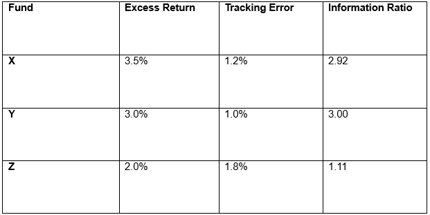 While the funds compared may differ in nature, the IR standardises their returns by dividing the difference in their performance, known as the expected active return, by the tracking error.